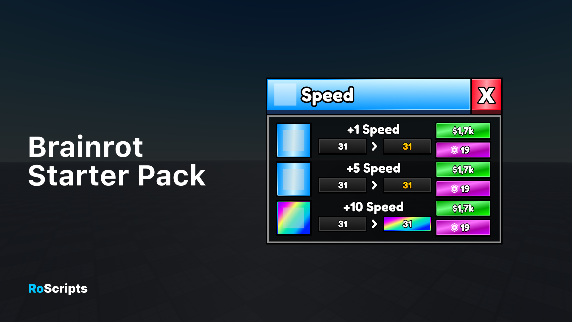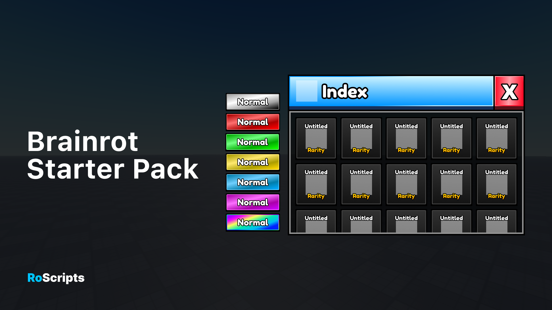Brainrot Starter Pack is perfect for saving you time when creating your next visually appealing Roblox game! This cartoon-styled pack is perfect for those who are creating an Obby, Simulator, Tycoon, or almost any genre of game. This pack includes over 9 Guis!